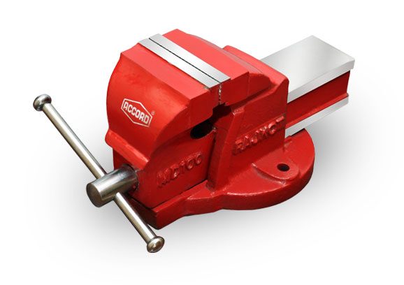 With body and slide of high grade cast iron, the jaws are made of hardened steel and replaceable, available with bright steel handle, Floating nut of cast iron.